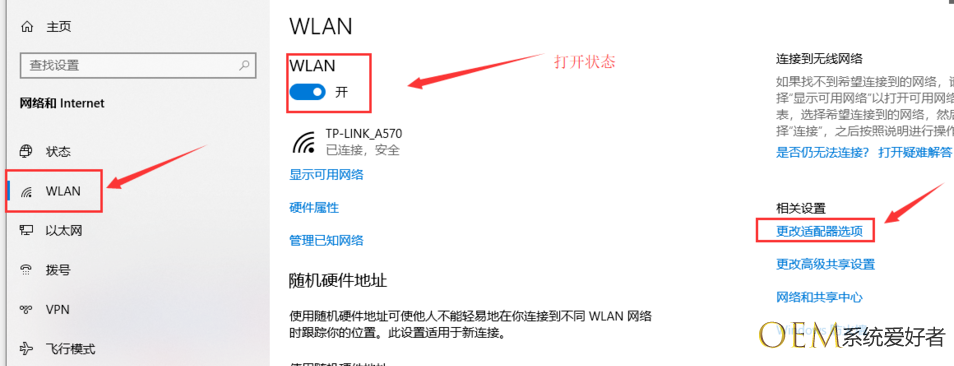 1、首先右键单击桌面右下角的无线WIFI图标,单击“打开网络和Internet设置”,然后点击“更改适配器选项”。