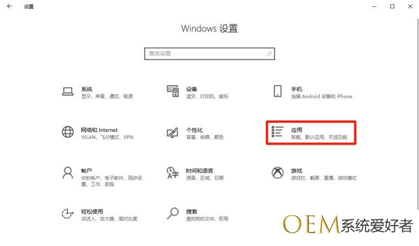 在“Windows设置”界面中,选择“应用”图标。