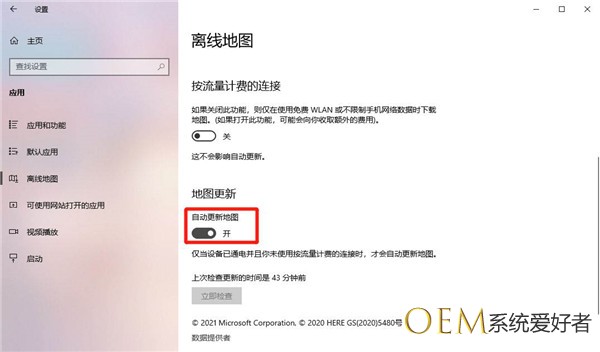 在“应用 》 离线地图”界面中,勾选“自动更新地图”选项的勾选开关。