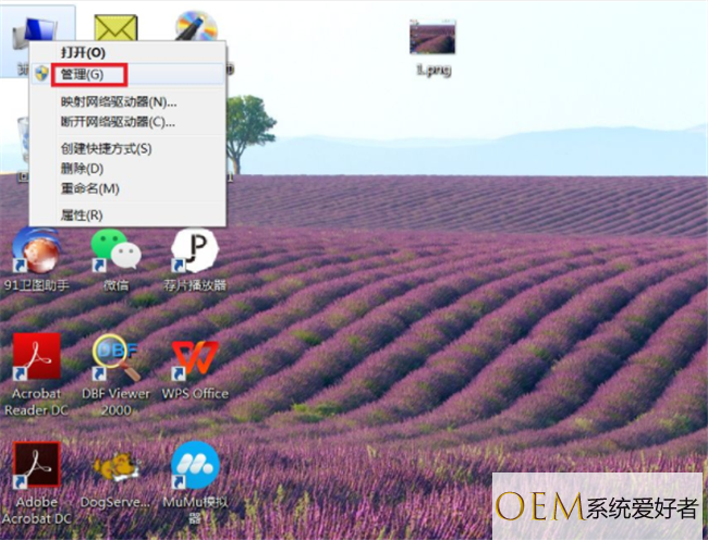 2、选中计算机图标,点击鼠标右键,找到管理。