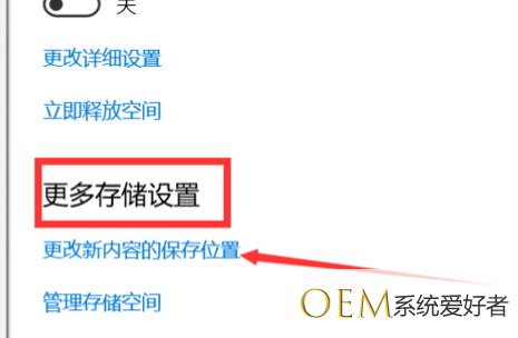 4、找到更多详细设置,点击下面的”更多新内容的保存位置“。
