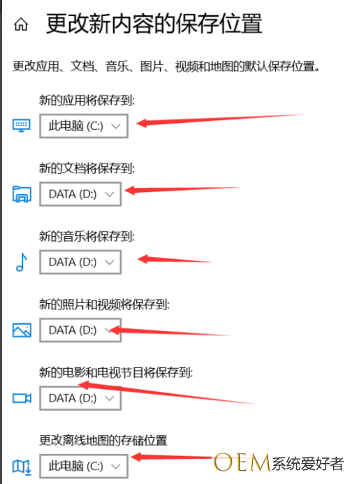 5、这里软件,文档,游戏,图片等都可以设置到相应的盘符。