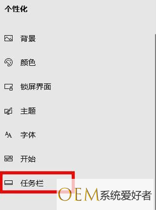 4、在屏幕的左侧,选择“任务栏”。