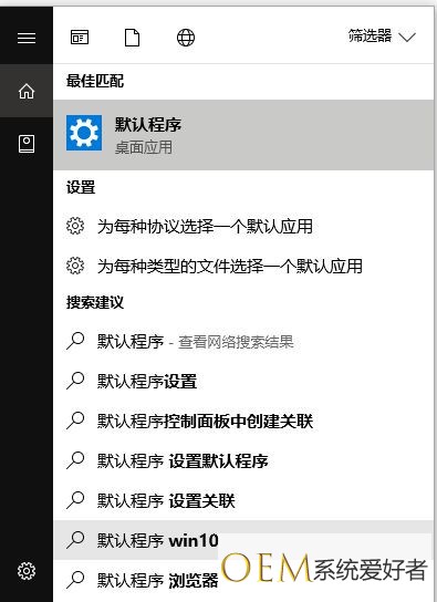 6、如果点击锁定不管用,就在左下角的搜索栏,输入"默认程序",去系统的设置界面修改默认浏览器。