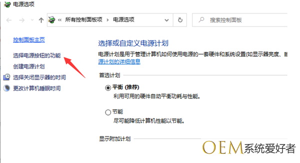 4、打开电源选项之后,点击左侧的“选择电源按钮的功能”,如下图所示。