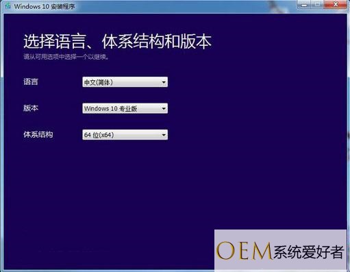 2、选择要创建的系统语言、版本和系统位数,下一步;