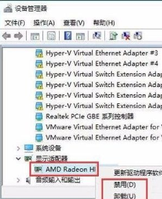 7.最后我们在设备管理器页面找到显卡,右键点击该显卡,然后在右键菜单中禁用显卡或卸载显卡驱动即可。
