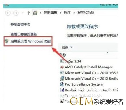 进到程序和功能的窗口中,点击里边的启用或关掉Windows功能。