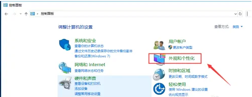3.控制面板点击外观和个性化进入,如下图所示
