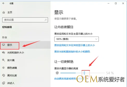 7.在显示界面,拉动右侧内置显示器亮度滑块即可调整显示器亮度,如下图所示