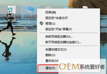 1、在电脑桌面鼠标右键点击桌面图标“此电脑”,选择属性;