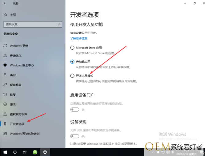 2、进入之后点击开发者选项按钮,选择开发人员模式。