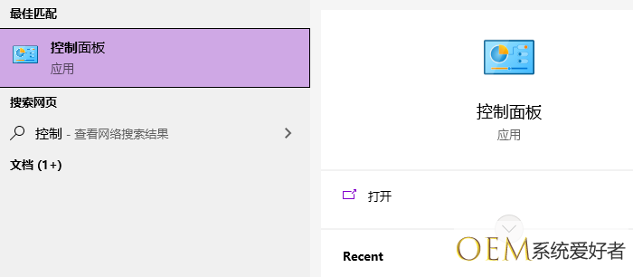 1、首先打开系统的控制面板,在搜索中搜索打开;