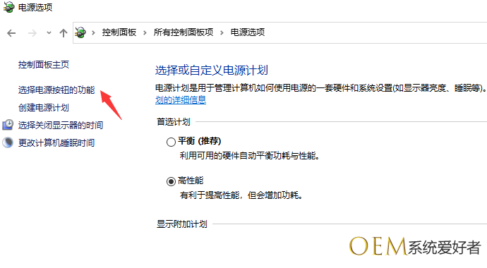 3、这时我们再点击左侧的 选择电源按钮的功能 链接;