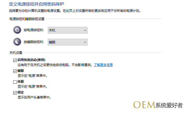 7、然后按上面的步骤重新启用快速启动功能。在前面小方框内打上勾(不影响关机)如下图,再点击保存修改。