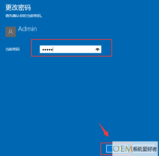 4、输入当前密码,接着下一步。