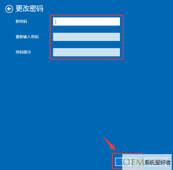 5、设置新的密码2遍,根据自己需求设置密码提示,完成确定即可。