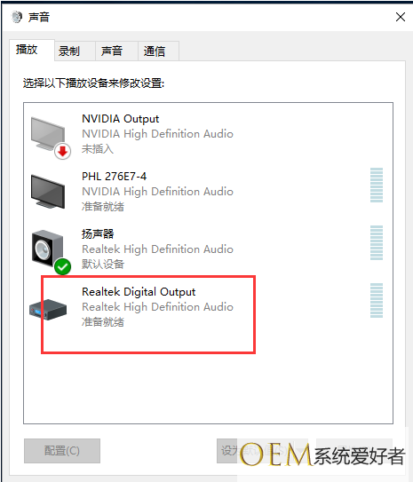 3、接着点击打开“播放”页面中的“默认设备”。