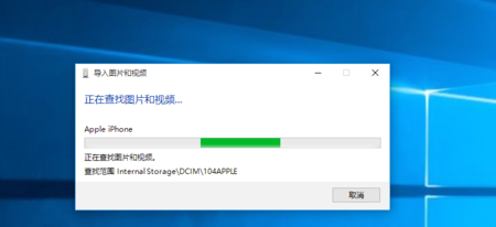 随后便可以看到当前正在从 iPhone 上导入照片和视频到 windows10 系统中的进度了。