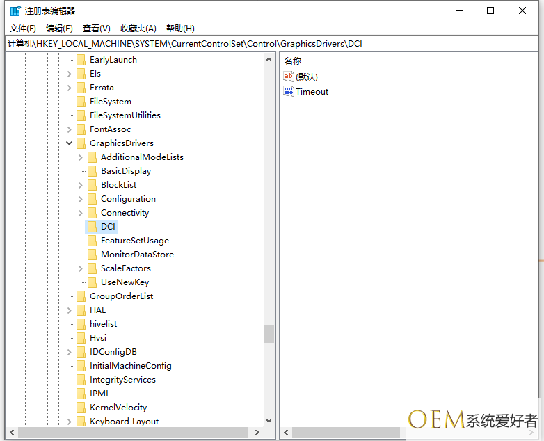 2¡¢¶¨Î»×¢²á±í·¾¶£ºHKEY_LOCAL_MACHINESYSTEMCurrentControlSetControlGraphicsDriversDCI¡£