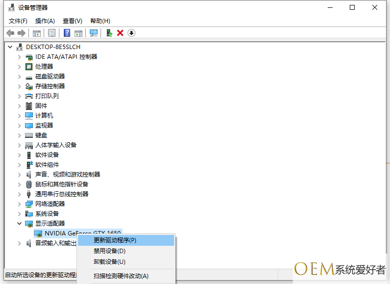 7、右键单击下面的显卡,选择更新驱动程序。