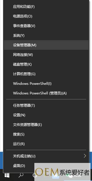 1、如果方法一不能解决的话,我们排查下显卡驱动问题。我们右击win10电脑win图标,选择设备管理器打开。
