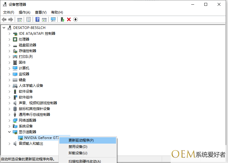2、点击显示适配器,找到显卡驱动右击,尝试更新显卡驱动看是否解决。(如果显卡驱动显示黄色感叹号的话,那就是驱动有故障问题,重新卸载安装新的显卡驱动)
