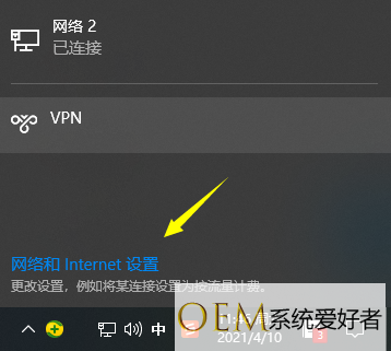 1、点击任务栏地球网络图标—网络和Internet设置,或者右键地球图标—打开网络和Internet设置;