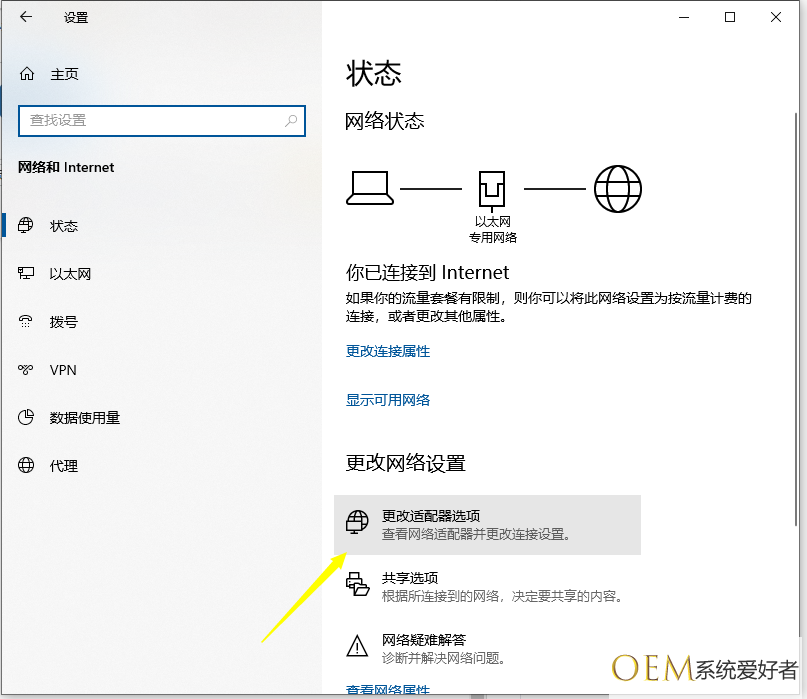 2、找到并点击更改适配器选项。