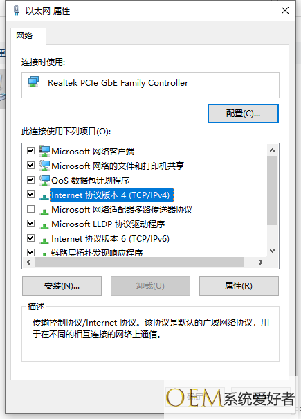 4、选择“Internet协议版本4”—属性。