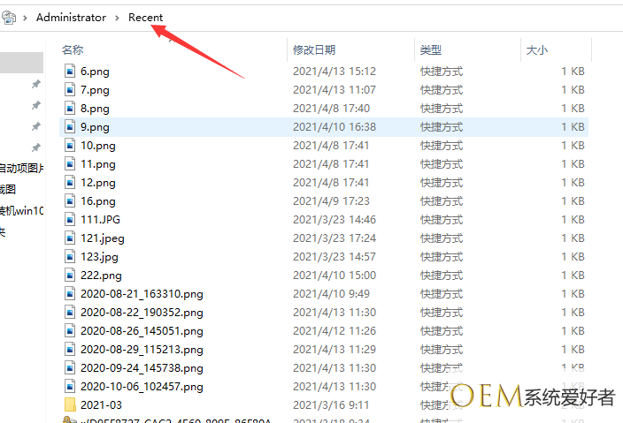 4、第二种方法,按win+r键打开运行窗口,输入recent,点击确定。即可查看最近运行的文件。
