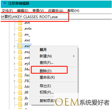 3、打开注册表编辑器后根据路径找到以下EXE文件,将其删除即可。