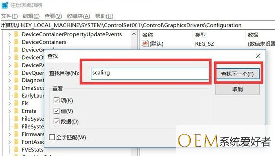 5、输入“scaling”,点击“查找下一个”;