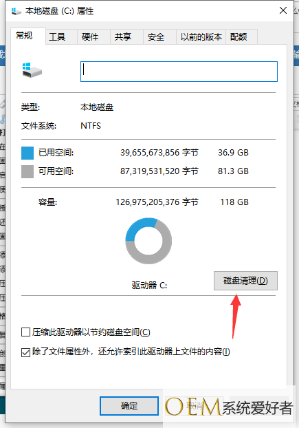 2、进入系统盘属性界面,选择磁盘清理。