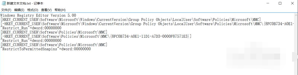 3、有的朋友按照以上方法却找不到MMC,这时我们就要新建一个文本文档了,然后将以下内容复制到记事本Windows Registry Editor Version 5.00
