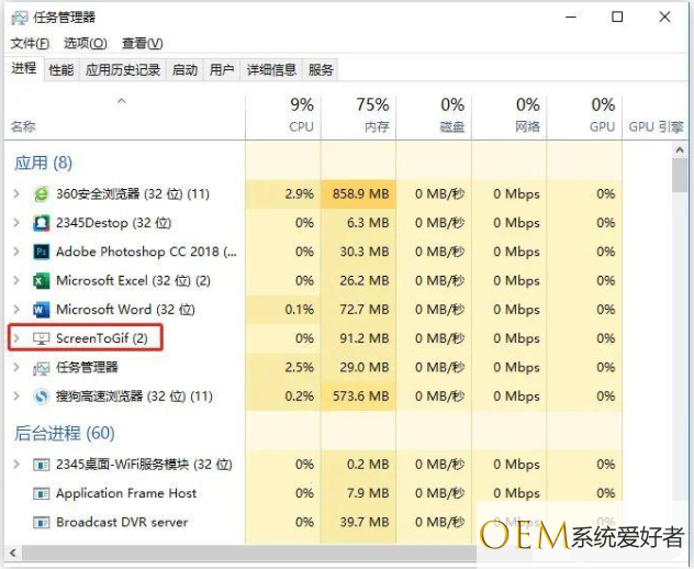 1、快捷键【Ctrl+shift+ESC】调出【任务管理器】。或者电脑底部右键打开【任务管理器】,点击【进程】,在应用下可看到正在运用的所有程序。