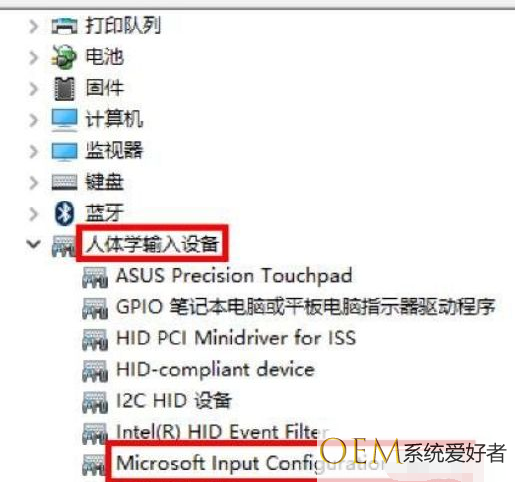 2、找到位于人体学输入设备下的“Microsoft Input Configuration Device”。