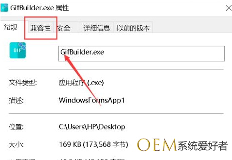 4、在属性面板这里点击兼容性。