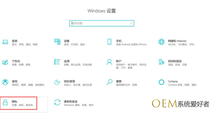 2、选择隐私(带锁的图标)。