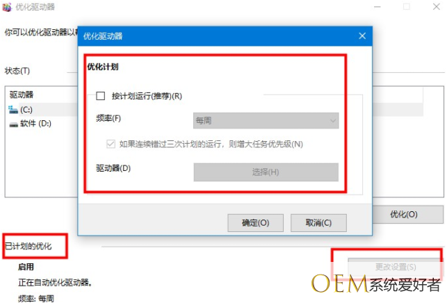 3、在已计划的优化处——点更改设置——取消勾选计划。