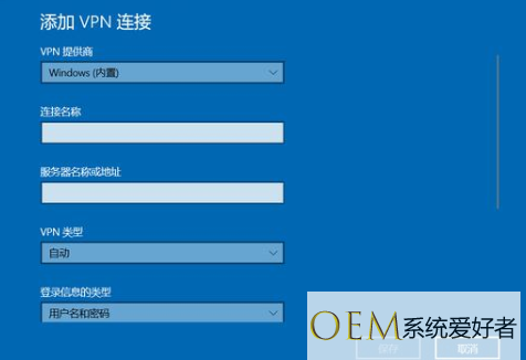 4.进入页面,在VPN提供商下方选项中选择“Windows(内置)”。