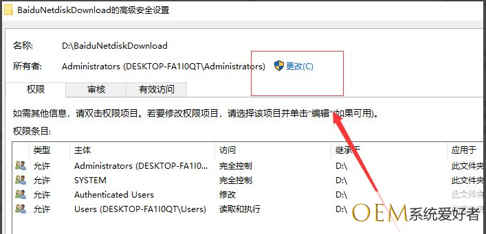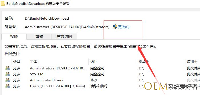 2、进入后选择所有者后面的“更改”按钮。
