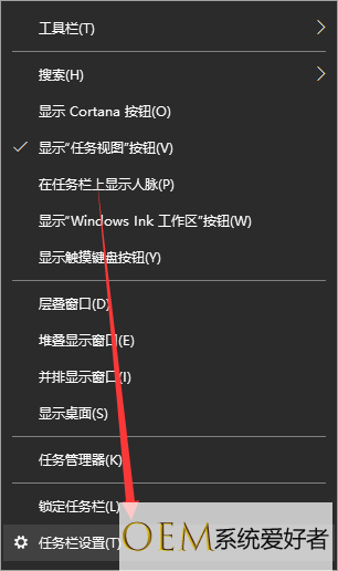 1.鼠标右键单击桌面下方的任务栏,弹出菜单选择任务栏设置;