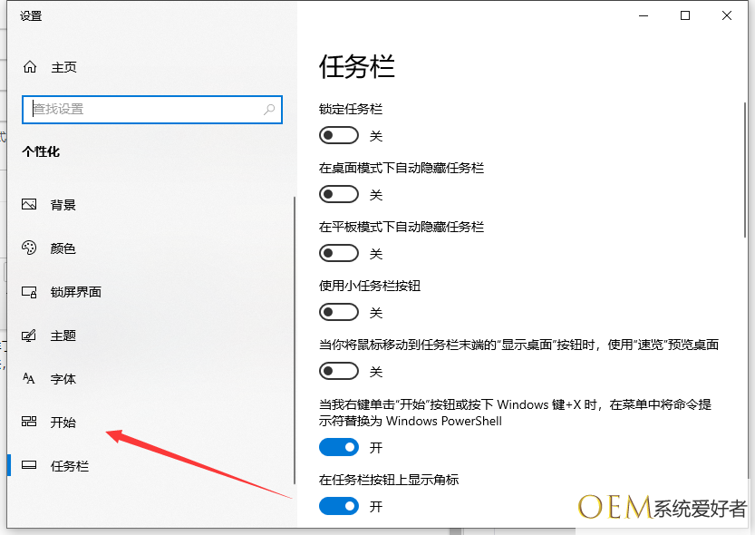 2.单击左侧的开始选项;