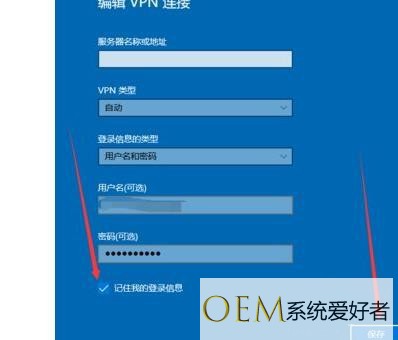 在编辑窗口中输入帐号密码,检查记住我的登录信息,然后点击保存。