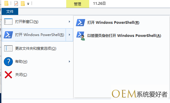 2、下面在打开的文档下拉列表中寻找“打开WindowsPowershell”菜单项,点击“以管理员身份打开WindowsPowershell”菜单项就可以。