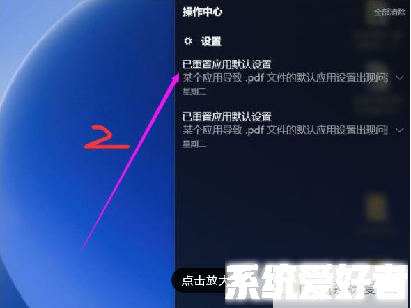 1、点击右下方,有个消息图标的通知栏,在通知栏中找到刚才的警告提示;