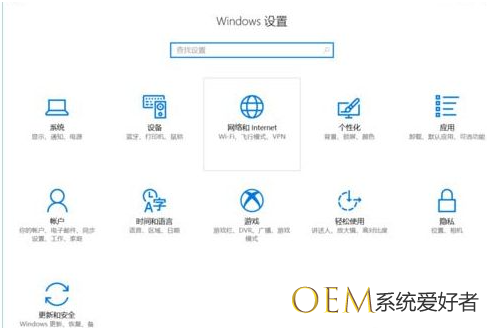 2、点击消息栏左上角的“设置”,进入Windows设置;