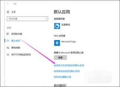 5、在“默认应用”中,下拉找到“选择按文件类型指定的默认应用”;