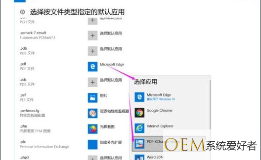7、点击Microsoft edge,弹出选择应用,勾选PDF Viewer应用程序;